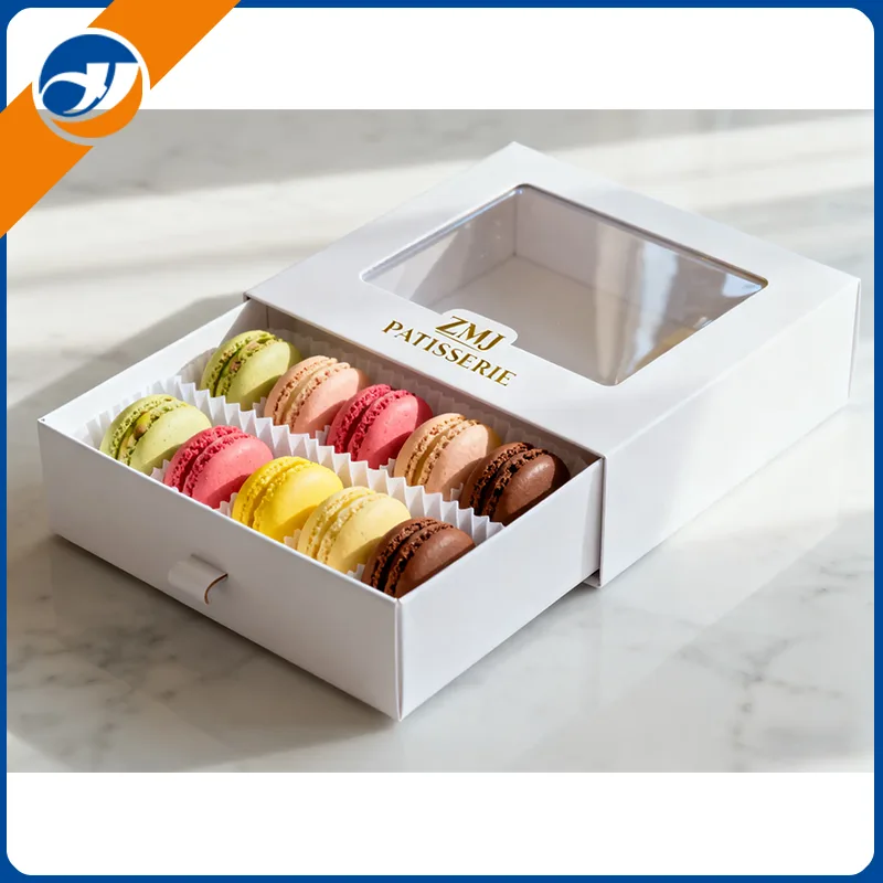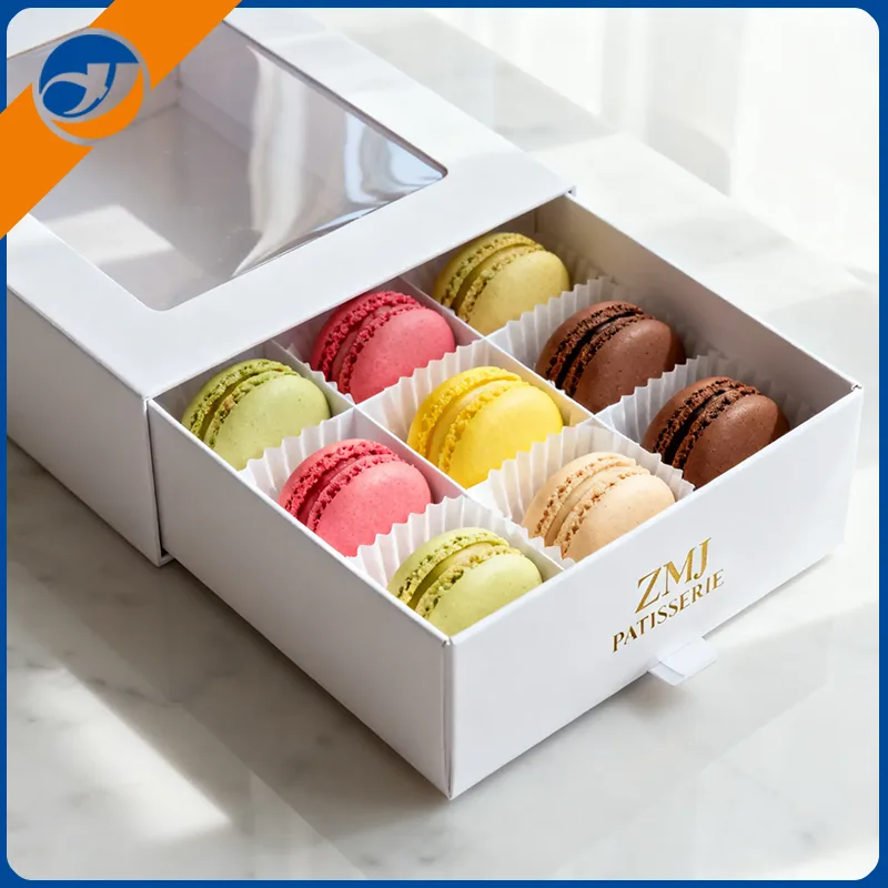 మాకరోన్లు సున్నితమైనవి, ప్రకాశవంతమైనవి మరియు విలాసవంతమైనవి అని మనందరికీ తెలుసు. కాబట్టి ప్యాకేజింగ్ ఈ లక్షణాలను ప్రతిబింబించాలి. Qingdao Zemeijia అధిక-నాణ్యత అనుకూల మాకరాన్ బహుమతి పెట్టెలను తయారు చేస్తుంది. ఈ పెట్టెలు మాకరాన్లను రక్షిస్తాయి మరియు వాటి ప్రకాశవంతమైన రంగులను చూపుతాయి. మా పెట్టెలు మీకు వెళ్లే మార్గంలో మాకరాన్లను ఖచ్చితమైన స్థితిలో ఉంచుతాయి.